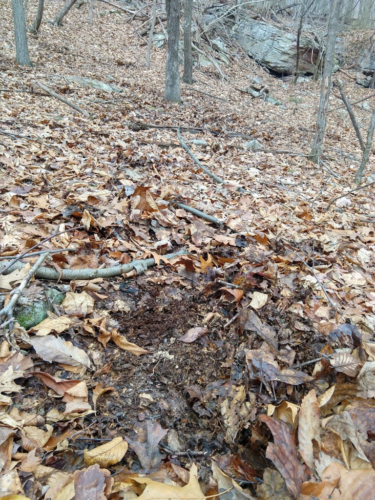 These signs are some of my favorite discoveries in the woods now…the calling cards of creatures who occupy the territory I’m invading for a little while. Every animal track, chewed-up tree trunk, broken bough, scattering of nut hulls, pile of scat (poop) tells me who I’m sharing the woods with. For some people, this is a scary notion — that the forests are not empty, but full of wild occupants. For me, it’s one of the best parts of being outdoors.