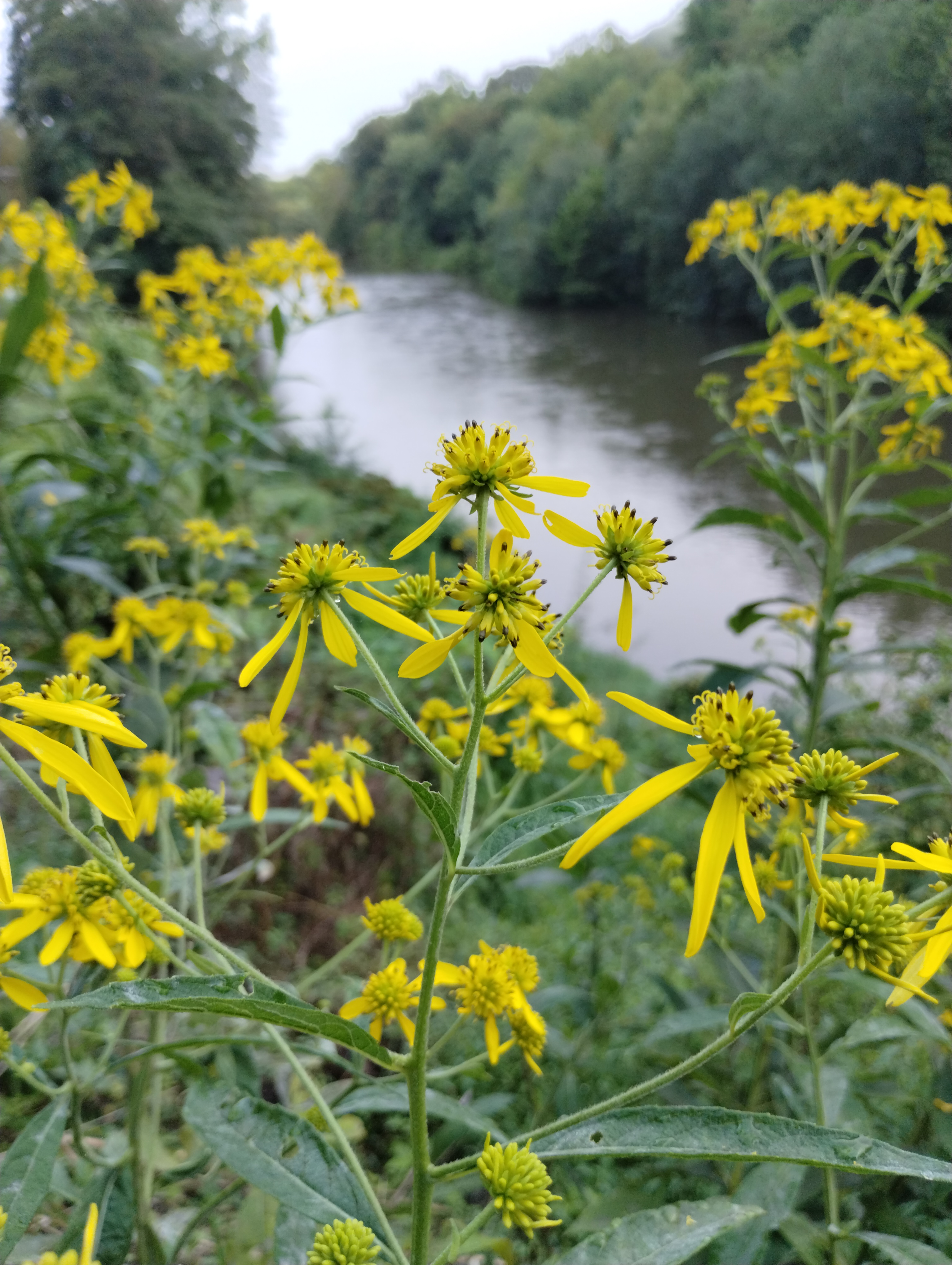 Wingstem (yellow ironweed) — another tall, golden yellow wildflower widely seen in our area, from fields to roadsides to riverside areas.